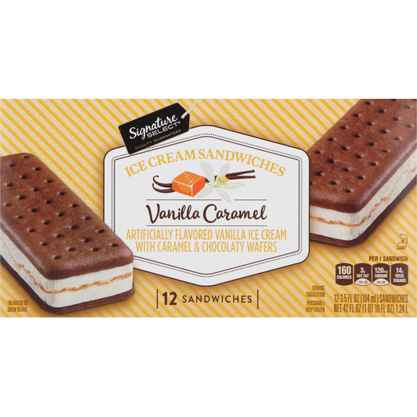 Signature Selects Ice Cream Sandwiches Vanilla Caramel 12 Each Delivery Or Pickup Near Me Instacart